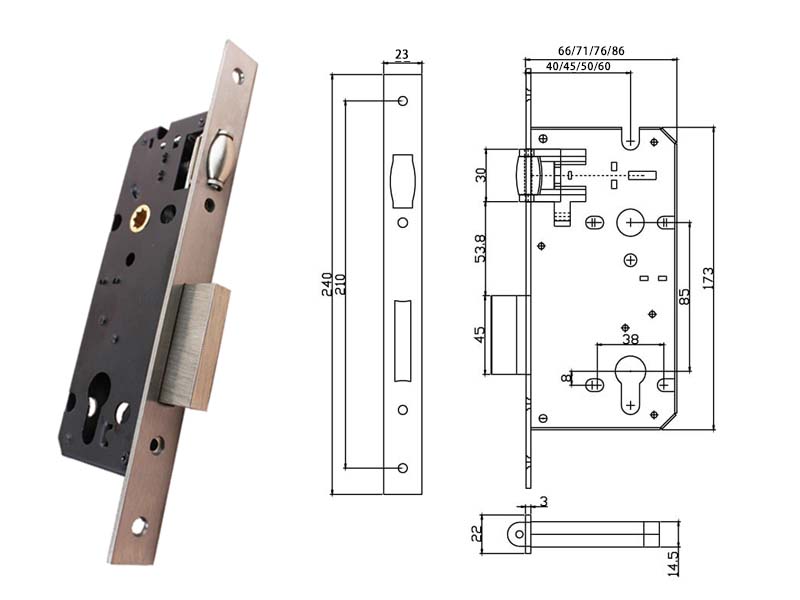 RML-08 銅碰珠防風(fēng)鎖體,可以做四個(gè)規(guī)格:40*85、45*85、50*85、60*85,此款不分左右方向