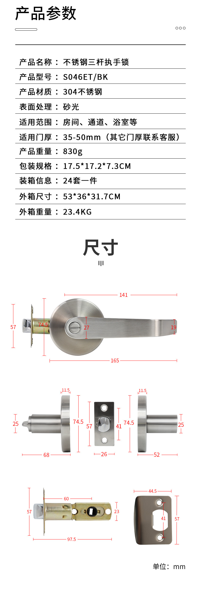 S046 不銹鋼304無(wú)鑰匙衛(wèi)浴三桿鎖