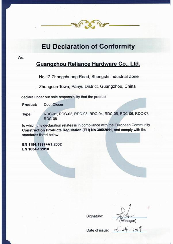 CERTIFICATE Of Door Closer